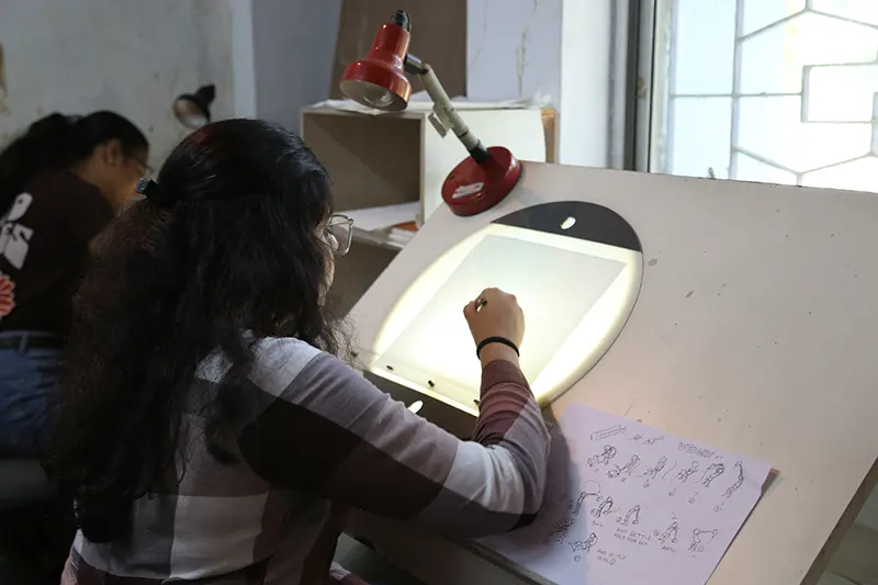 The objective of the Animation Creation and Direction course is not only to make the student a skilled Animator but also to introduce to them all aspects of animation filmmaking. At Roopkala Kendro the students learn the basics of Animation filmmaking, from pre-production to post-production. Apart from 2D Classical and 3D Digital Animation, students get the opportunity to explore other experimental forms of Animation like cut-out, clay etc.