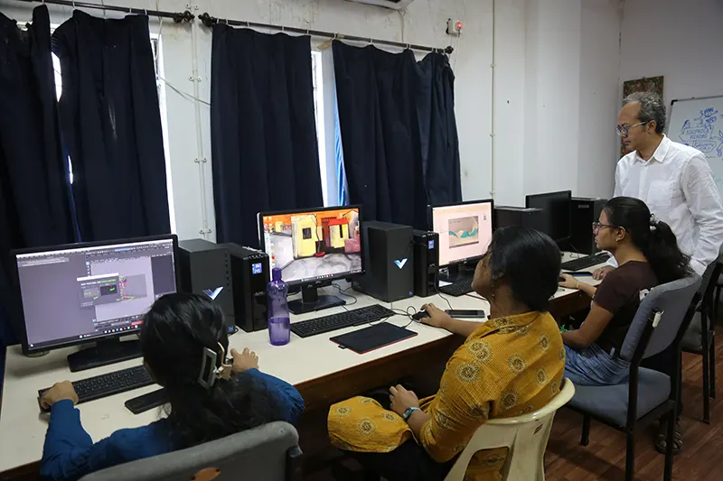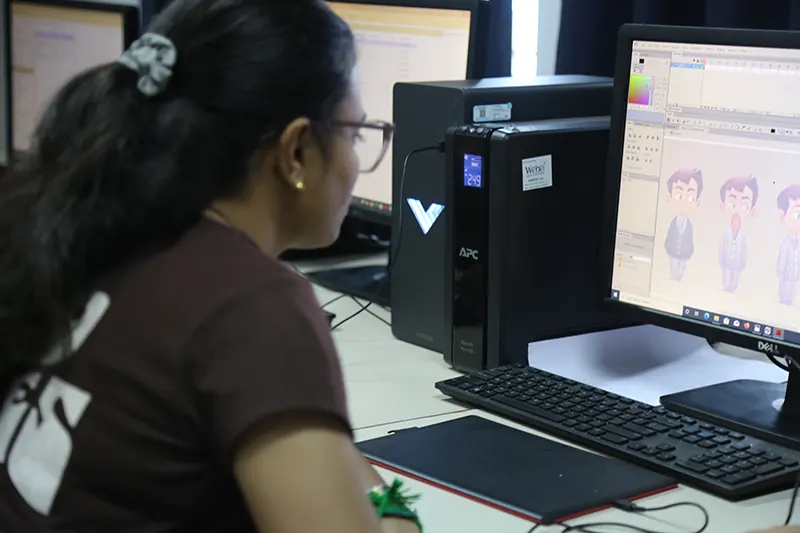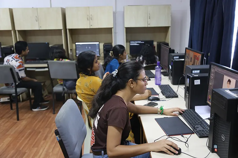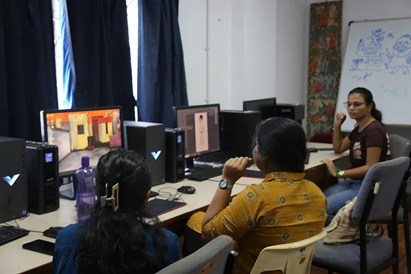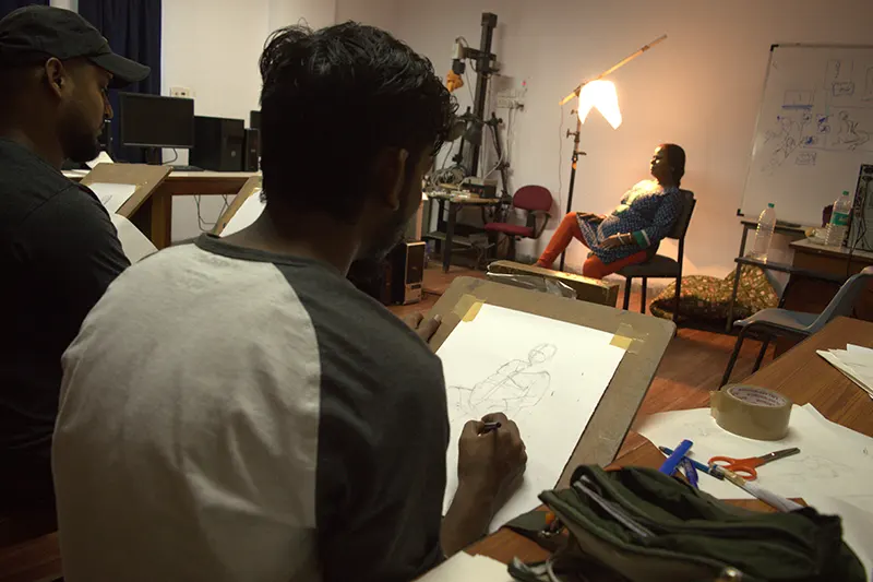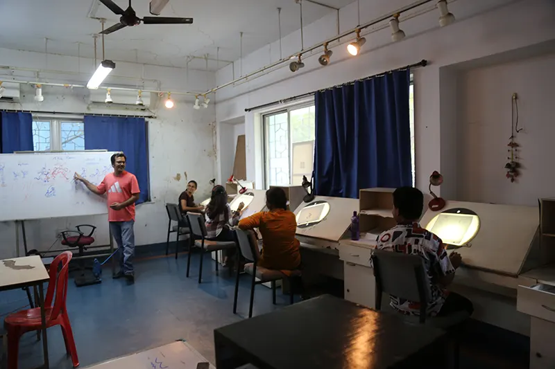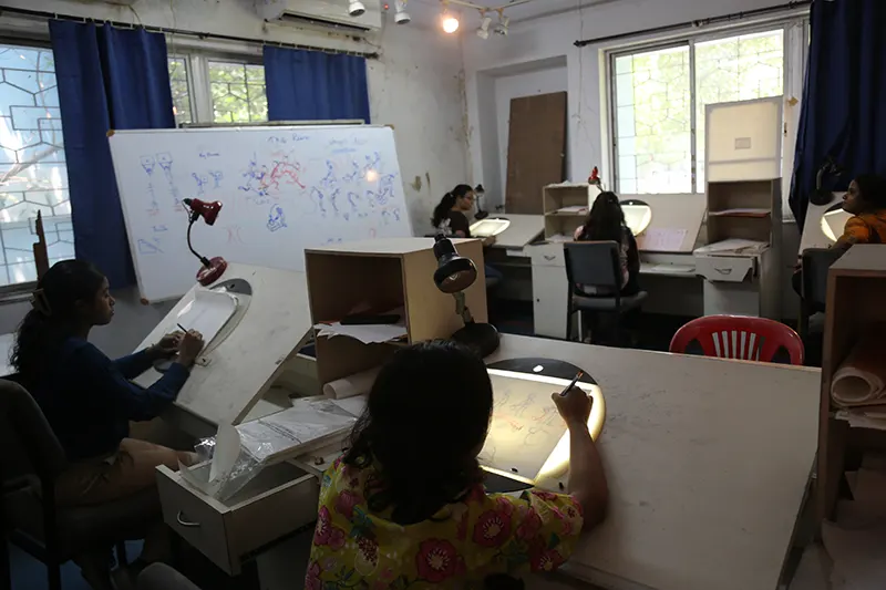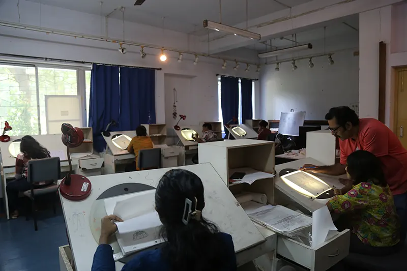 The animation department is equipped with a comprehensive range of facilities designed to support every stage of the animation process. The Drawing and Pre-Production Studios are furnished with light boxes, easels, and a variety of sketching materials, providing ample space for life drawing, character design, and storyboard development. A dedicated traditional art studio allows students to strengthen their foundational skills through hands-on practice using classical techniques. The institute also houses labs for both 2D and 3D animation. Stop-motion animation facilities are also available. A reference library offers a collection of anatomy books, animation art books, comics, and design guides to inspire and inform students. Additionally, the film screening room serves as a space for viewing animation classics, student work, and film analysis sessions, enhancing visual literacy and storytelling techniques. For post-production, the editing and compositing facilities for video editing and visual effects, enabling students to refine and finalize their projects to industry standards.